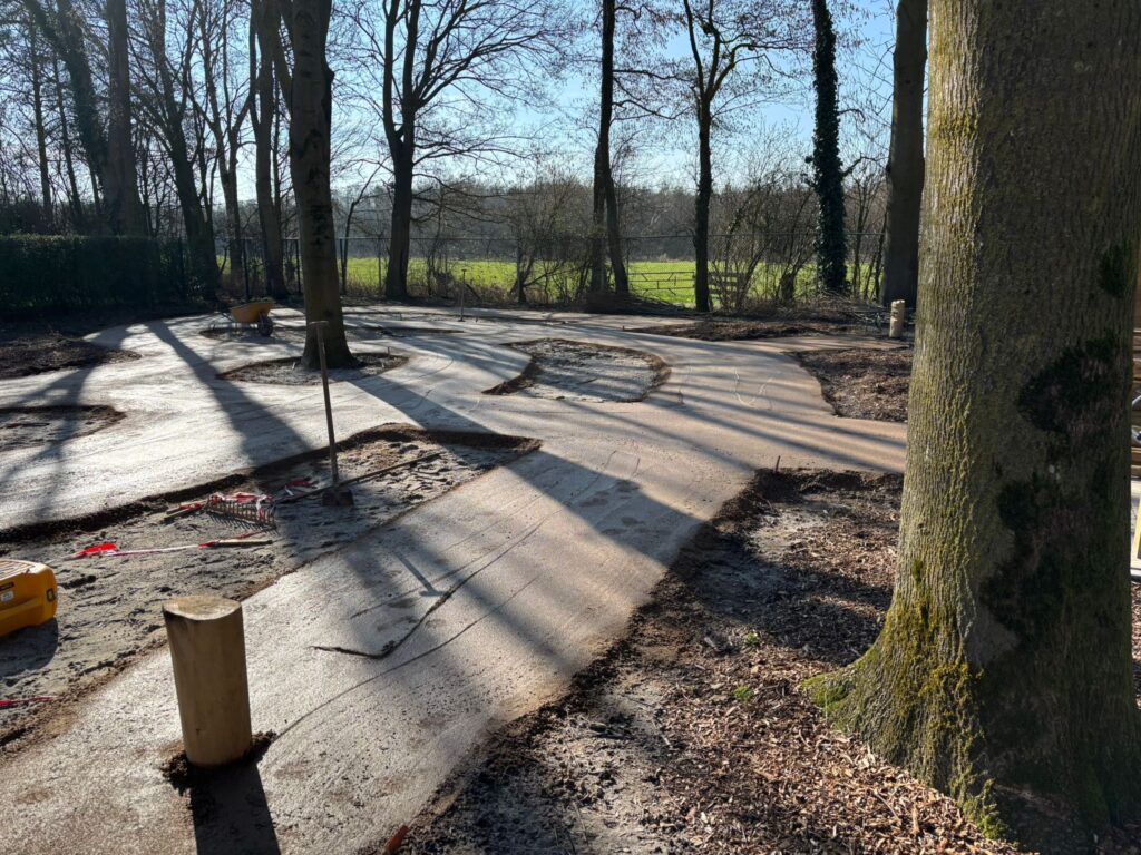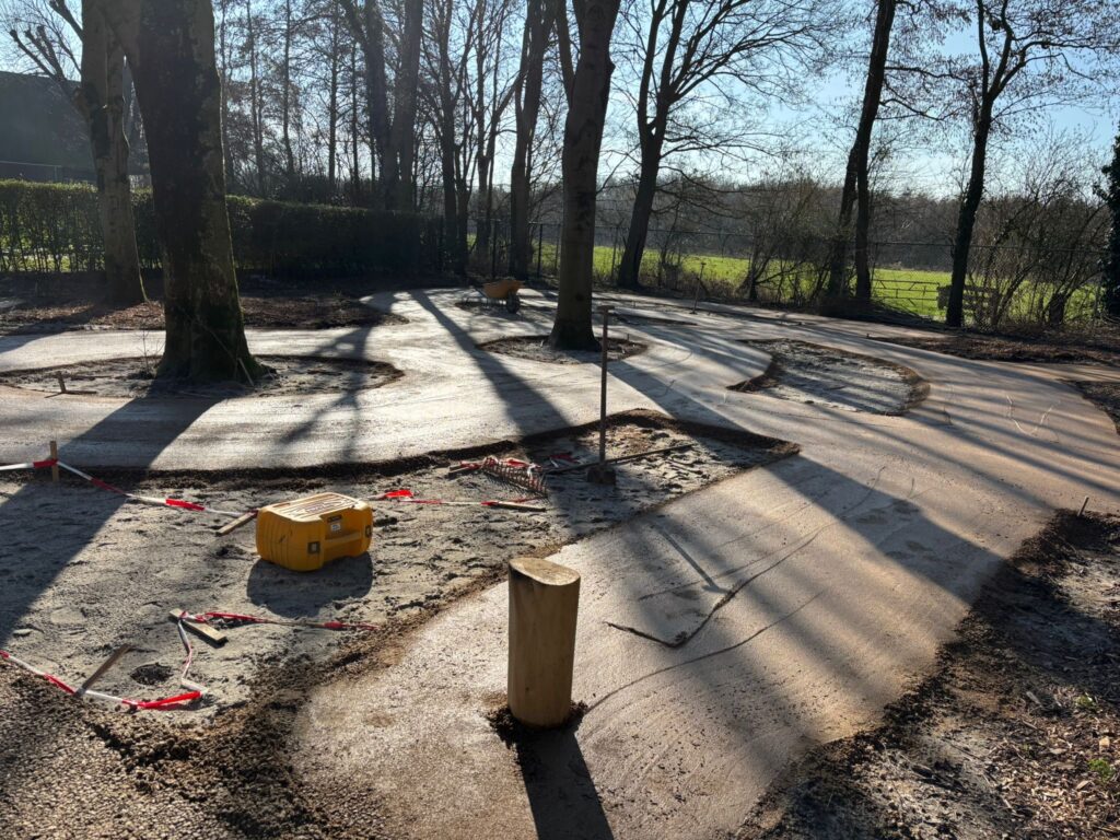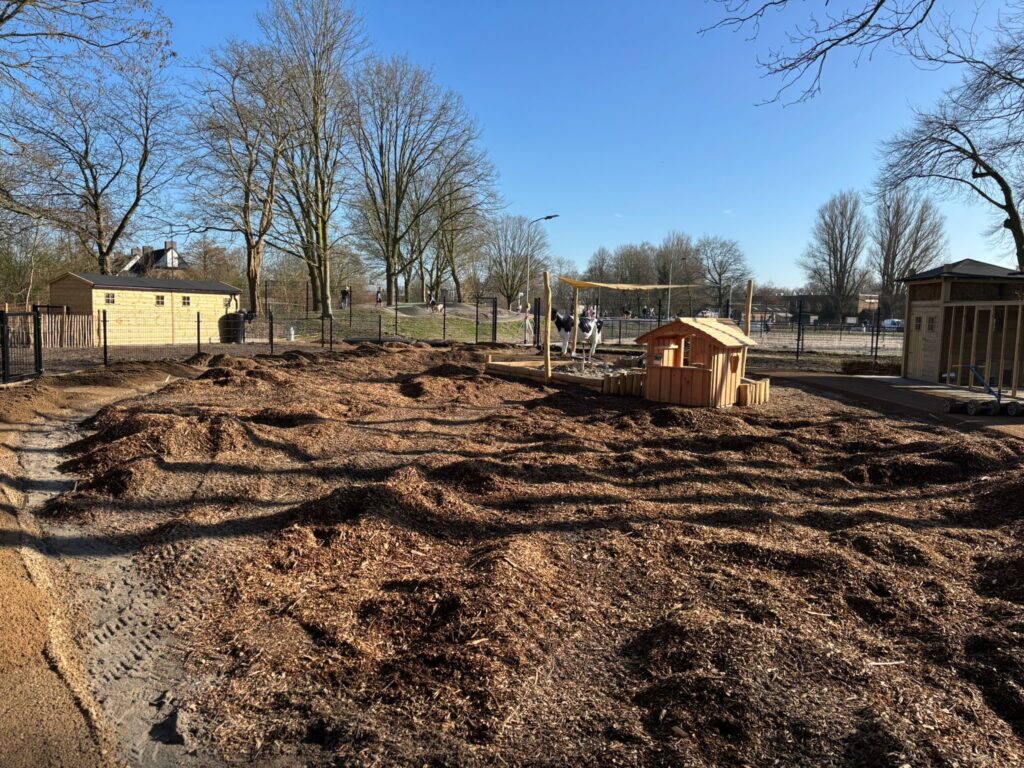 Tussen de paden is boomschors aangebracht en de komende periode wordt het terrein verder ingericht met groen.