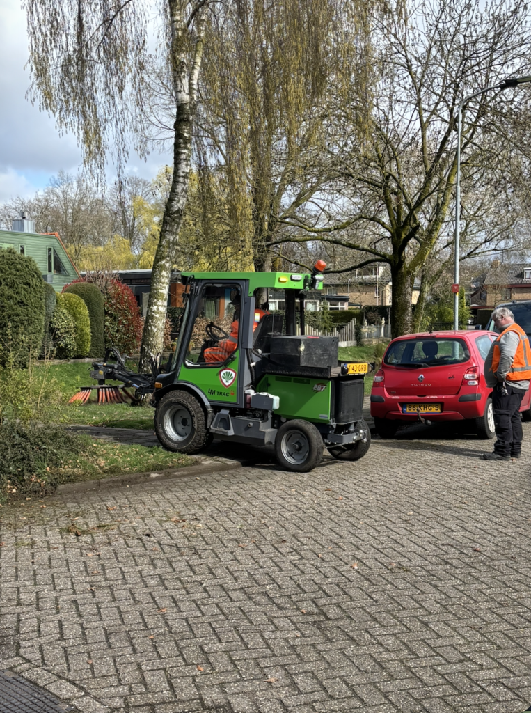 Tijdens zijn eerste werkdag in Nijkerk en Hoevelaken maakte hij kennis met de borstelmachine. Onder begeleiding van een ervaren vakman, met maar liefst 20 jaar ervaring, leert hij stap voor stap de kneepjes van het vak. Van het besturen van de machine tot het efficiënt en netjes uitvoeren van het werk.